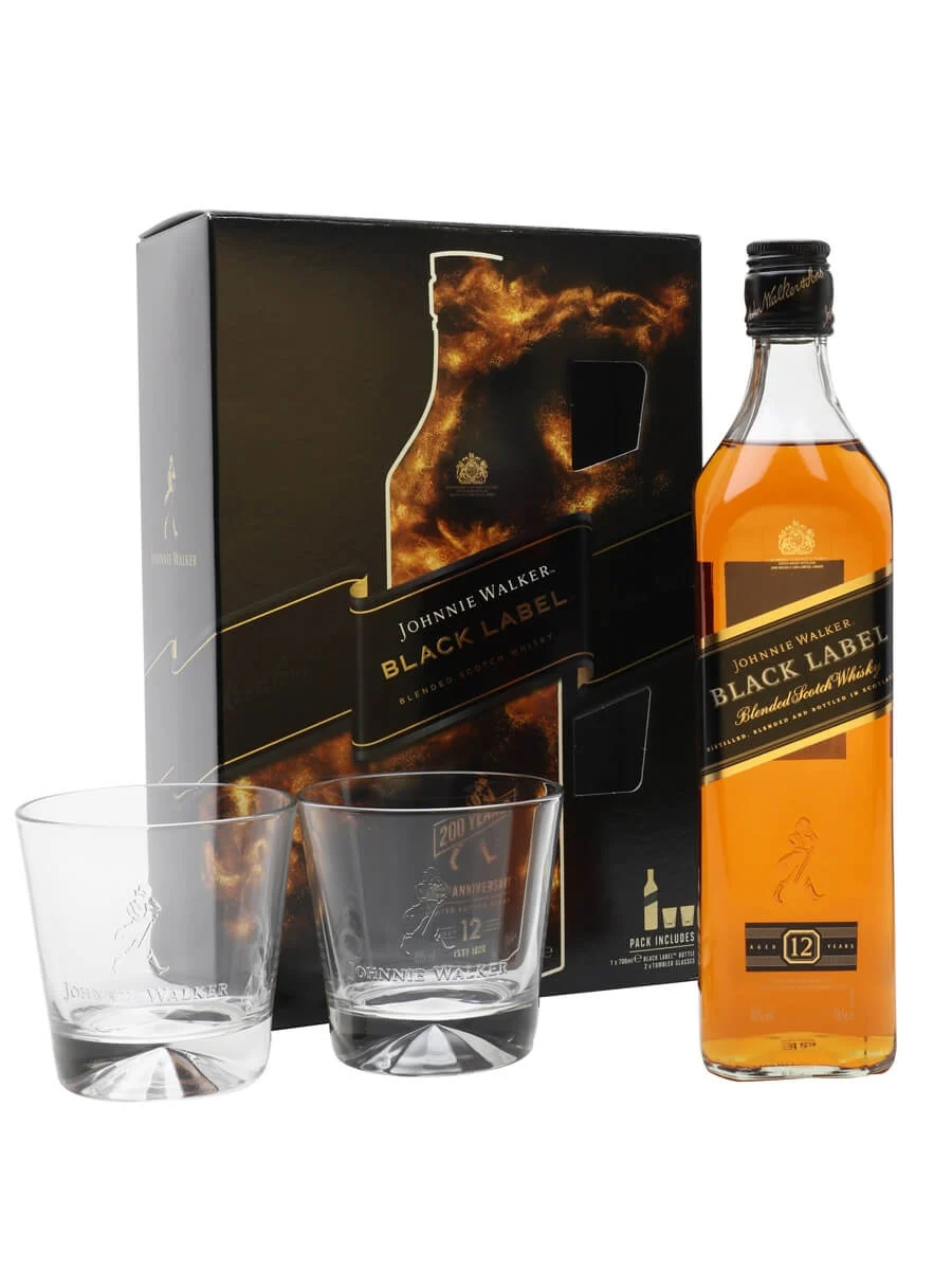 A special Johnnie Walker Black pack, providing a couple of solid Striding Man adorned tumblers to enjoy your whisky from.